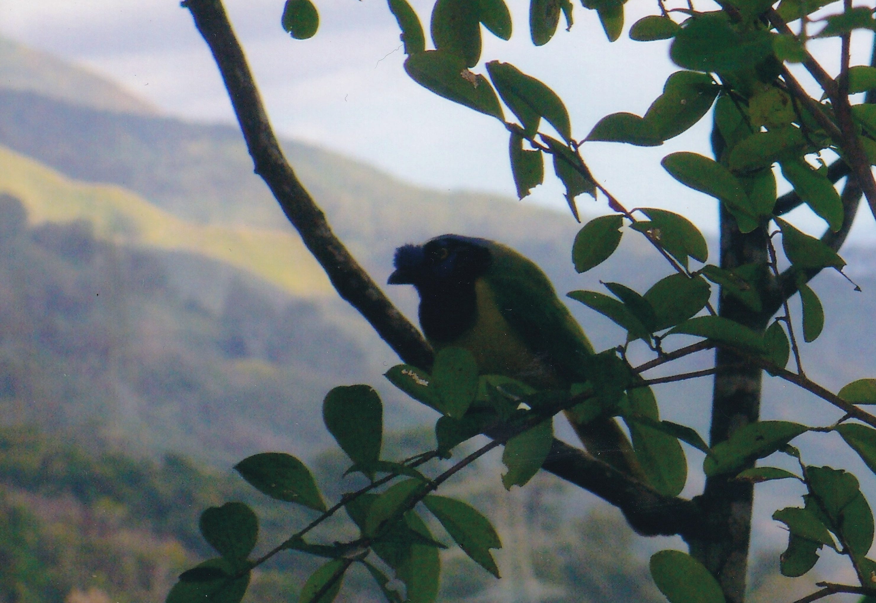 This marks the third time our photo albums have assuaged my regret and provided proof I maintained at least a middling interest in birds during my non-birding years. The Green Jay (Inca type) is a New World jay of the Andes Mountains with a range stretching from Venezuela to Bolivia. Brightly colored in blue, green, and yellow with a black bib, the bird is fairly unmistakable, and I think we can agree the blue pompom atop the bill adds even more fun to an already festive bird. Though it appears not entirely clear whether the Inca-type Green Jay and the Green Jay of Texas, Mexico, and Central America constitute a single species, the two were split in 2009 by the International Ornithological Congress. The Cornell Lab of Ornithology does not seem to agree, as eBird categorizes the Inca type as a subspecies of the Green Jay. For my part, I’m just happy to have unearthed this photo, taken atop the Ávila—the forested mountain/national park overlooking Caracas. I’m not sure I have an exact date for this sighting, so an eBird entry remains up in the air. For now I’ll content myself with the refreshed memory and a handwritten checkmark in my copy of Birds of Venezuela, which calls the bird Inca Jay.